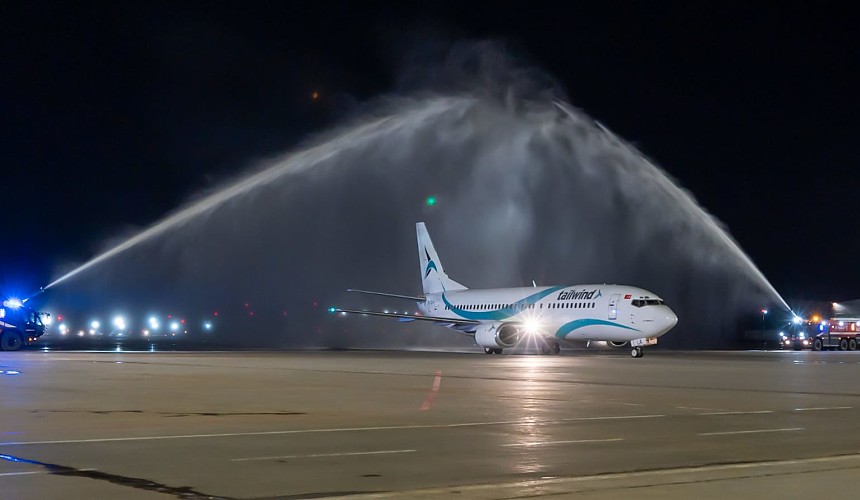 Boeing 737-400 прибыл из Турции ночью, его по традиции встретили водной аркой. В Стамбул самолет отправился почти по расписанию, с задержкой менее часа.