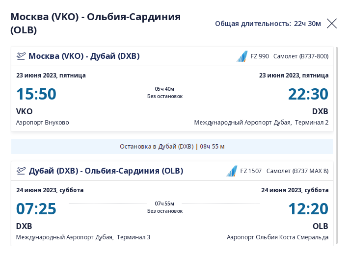 Ближневосточный лоукостер flydubai внезапно отказался от планов организовать рейсы из Дубая в административный центр итальянского острова Сардиния, город Кальяри. Еще в ноябре перевозчик выпустил пресс-релиз, пообещав, что полеты начнутся 22 июня этого года и станут первым межконтинентальным рейсом в расписании Кальяри. Однако буквально на прошлой неделе стало известно об изменениях – боинги flydubai полетят не в Кальяри, а во второй по величине аэропорт, Олбию. Рейсы начнутся 21 июня и дадут возможность российским туристам добираться на Сардинию с одной стыковкой, впрочем, довольно продолжительной – от 9 часов. Билеты туда-обратно сейчас продаются от 2196 долларов (около 180 тыс. руб.).