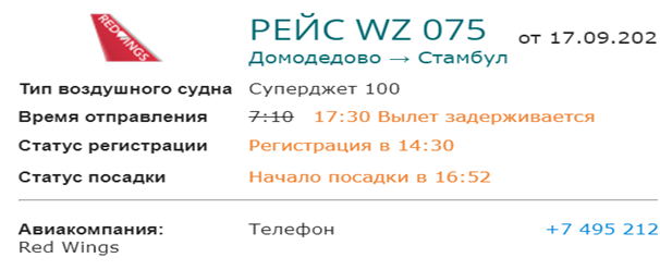 Отправление рейса WZ 075 в Стамбул авиакомпания перенесла более чем на 10 часов, с 7 утра на 17:30. С заметным опозданием вылетит в Ереван WZ 4321 – в 14:30 вместо 07:20.