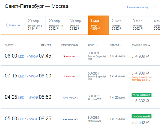 23 апреля в Питер из столицы можно улететь за 1,9–2,2 тыс. руб. в зависимости от времени вылета. Стандартная цена такого билета – около 5 тыс. руб.
