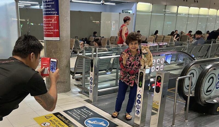 Героя вирусных роликов в соцсетях и публикаций в СМИ называют «оранжевый кот Суварнабхуми», а на самом деле девятимесячного пушистика зовут Ноо Ранг. Его любимое занятие – кататься по траволатору между этажами и наблюдать за туристами.