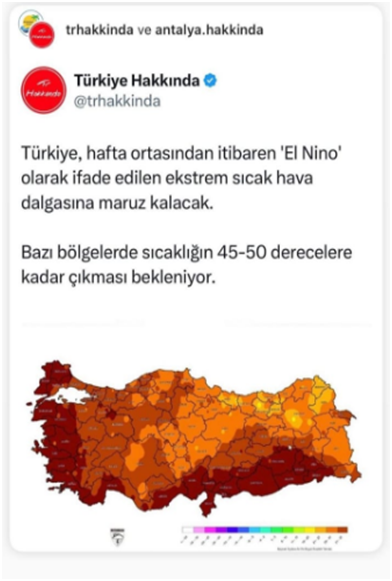 В Турции с середины следующей недели ожидают экстремально жаркую погоду. Турецкие СМИ предупреждают, что в некоторых районах страны температура воздуха поднимется до +45... +50 °C.