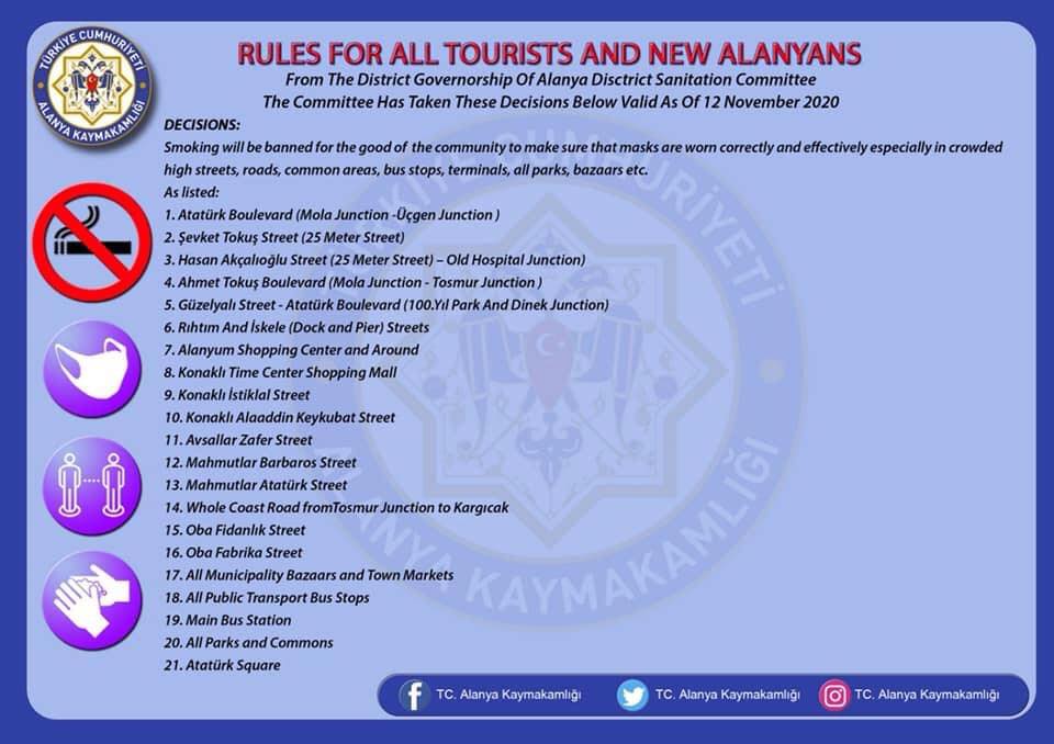Как пояснил Владимир Хотько, руководитель сообщества в Фейсбуке «Турция – Аланья – Махмутлар», чиновники в каждом регионе должны сами определить места, где новый запрет вступит в силу. Например, губернатор Аланьи после заседания совета районного комитета утвердил запрет на территории 21 зоны. К ним в большинстве своем относятся бульвары, рынки, прогулочные аллеи и т. д.